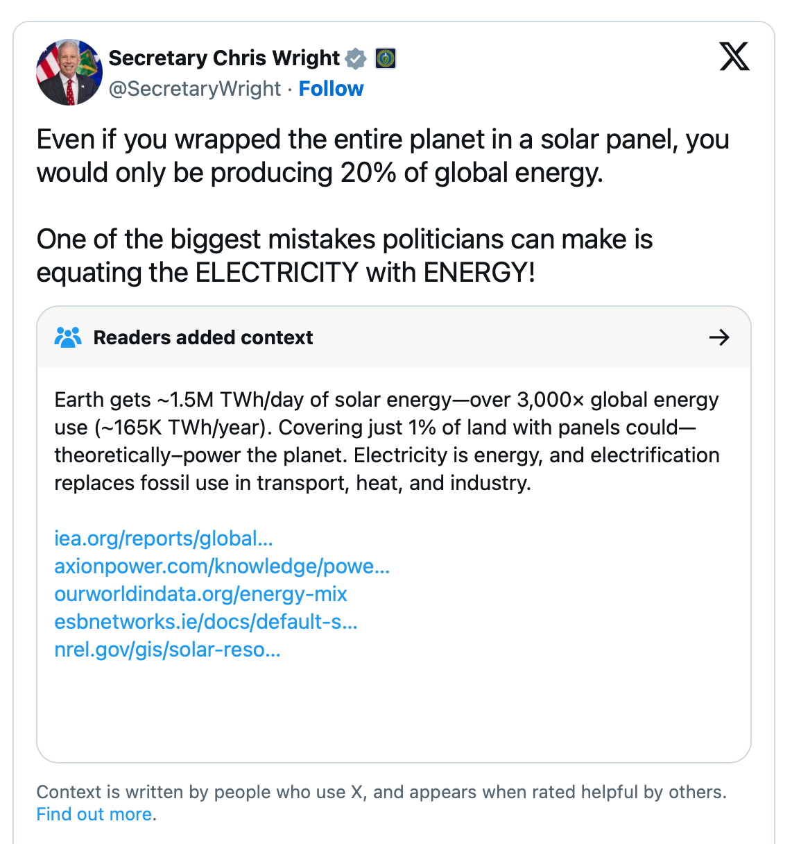 US Energy Secretary Chris Wright is a very intelligent man. That’s the reason he has the critically important job he carries out with such professionalism in the current glorious US administration. His grasp of the global energy market and the critical role played by the fossil fuel industry is second to none.