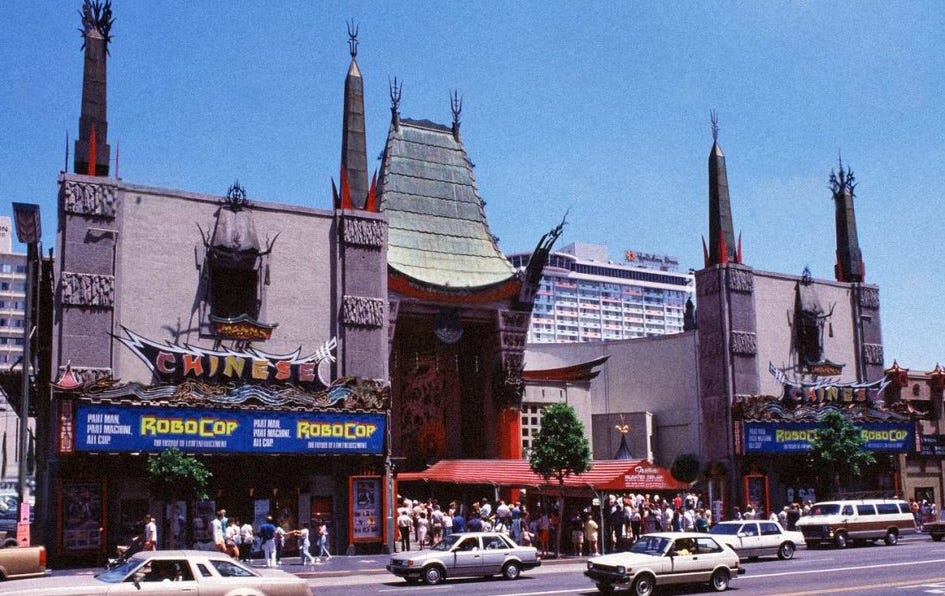 We parked up on a side street, crossed the road and walked toward an extraordinary looking cinema. A place I know know to be Manns Chinese Theatre on Sunset Boulevard. At the time, the whole experience was overwhelming, this was the premier of a new movie I had not heard anything about.